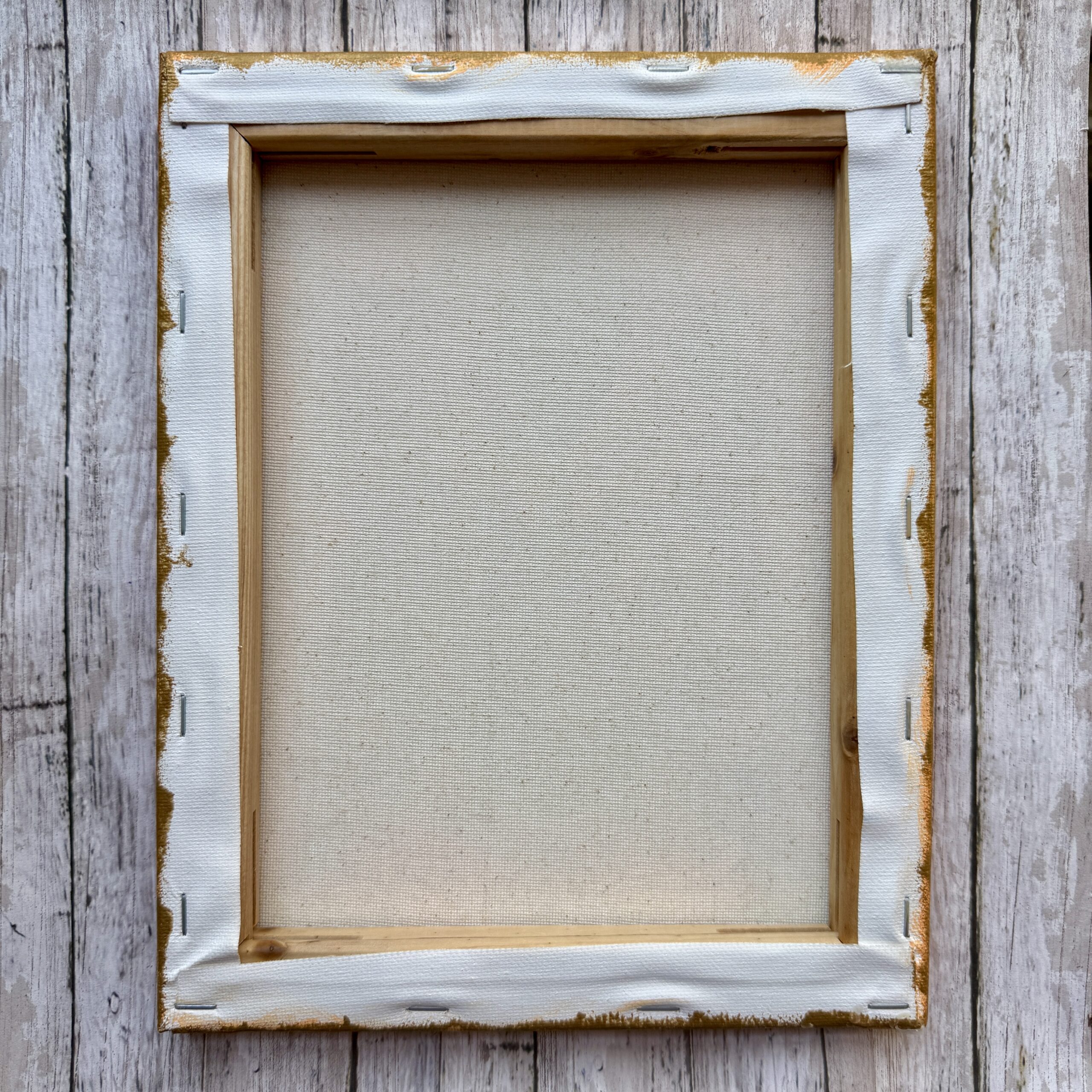 -8×10 inch stretched canvas -Painted scallop outside edge -Poly coat -Unfinished backside -Indoor use is optimal
