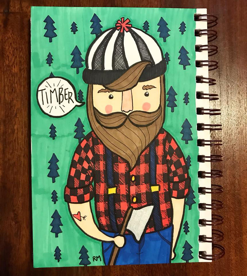 Happy Tuesday! Here is a cute lumberjack to brighten your day. Since the last sketch was very girly, this post is dedicated to the boys. My husband’s side of the family is pretty outdoorsy, so it seemed fitting to have a sketch that represented the wilderness. We love to go camping, go on hikes, make campfires and of course eating smores. (Yummy!) Sketch made with markers and pen.
